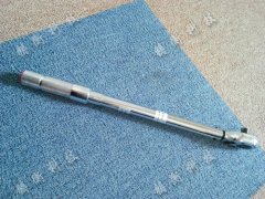 3,首先在預置式扭力扳手上設定所需扭距值(由彈簧套在頂桿上向扭距釋放關(guān)節(jié)施壓),鎖定扭距扳手開始擰緊螺栓,當螺栓達到扭距值后(當使用扭力大于彈簧的壓力后)會產(chǎn)生瞬間脫節(jié)的效應.在產(chǎn)生脫節(jié)效應的瞬間發(fā)出關(guān)節(jié)敲擊扳手金屬外殼所發(fā)出的"卡塔"聲.由此來確認達到扭距值的提醒作用.(其實就象我們手臂關(guān)節(jié)成15度彎曲放在鐵管里瞬間申直后會碰到鋼管的原理一樣).